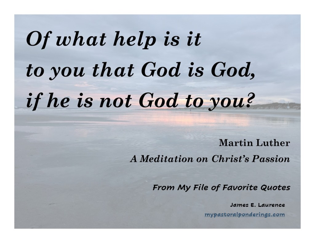 In this quote from Martin Luther, he emphasizes the personal relationship that God wants to have with each and every one of us, a personal, meaningful relationship grounded in love. The God who loves us eternally, unconditionally, and completely, wants for all of God’s children to know and experience this love for themselves, and to find in this love an abundant, meaningful, and grace-filled life.