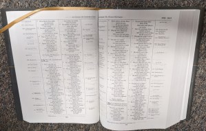 The Thompson Chain-Reference Bible that I received is a hardcover, red-letter, ESV Bible. It has thin pages and small print (8.3-point font), like many study bibles. It includes 16 pages of full color maps and a number of other bible study aids. But the main feature of this bible, and what sets it apart from other bibles, is the “easy to understand Chain-Reference System with over 100,000 references in the margins” and references covering “over 8,000 topics, each with its own pilot number for exhaustive topical study.”